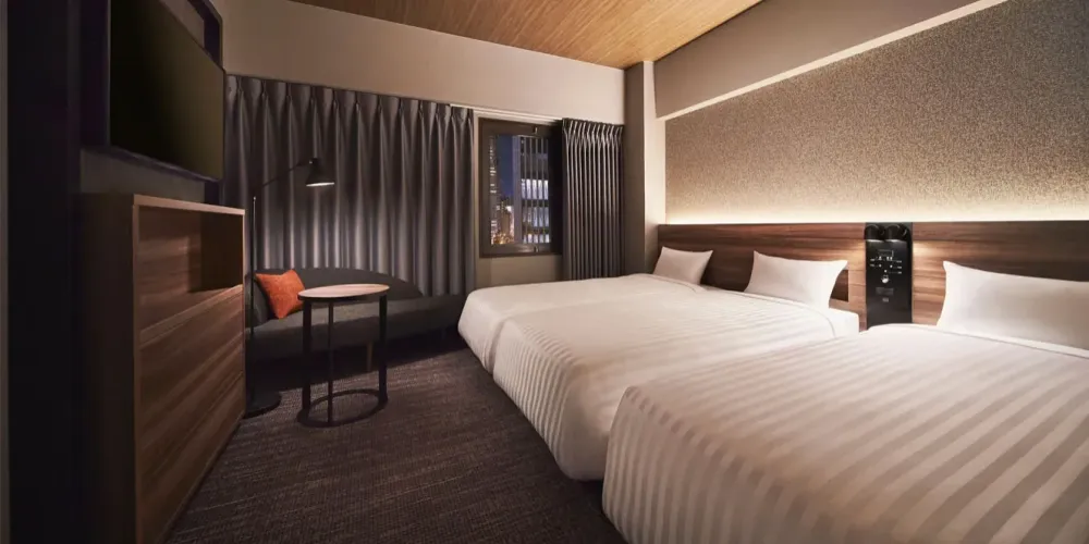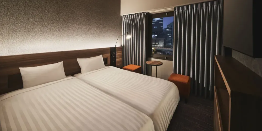 広さ17.1m2、ベッド幅110cmのベッドを2台備えたツインルームです。