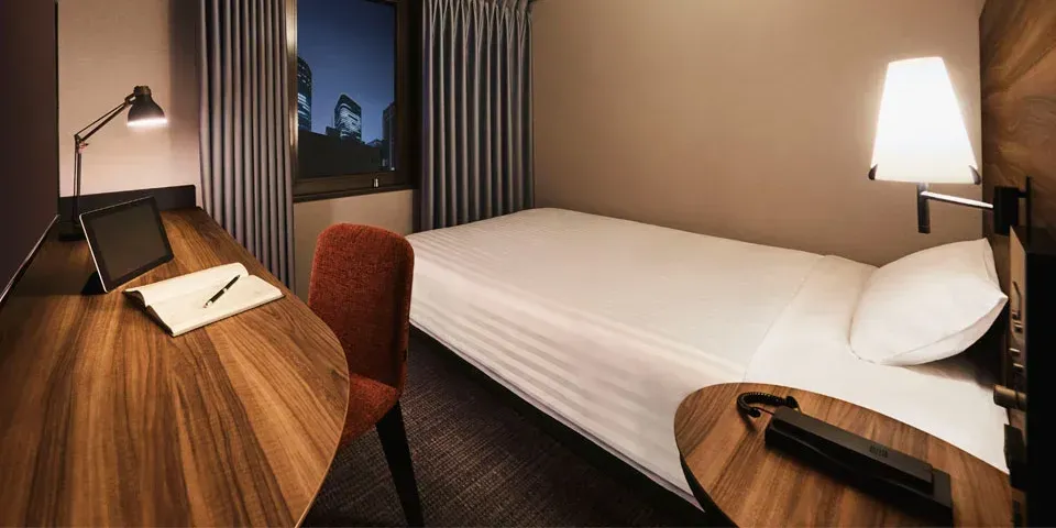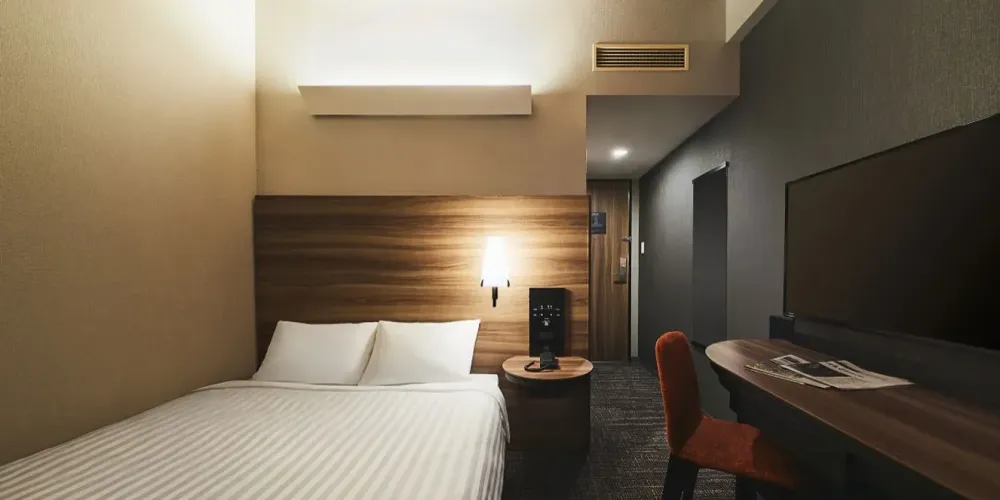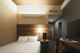 木目調のデザインで機能的なお部屋は心地よくお泊りいただけます。