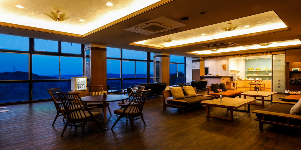 ロビーは広々した空間になっております。ロビーからは、信貴山の景色を望むことができます。