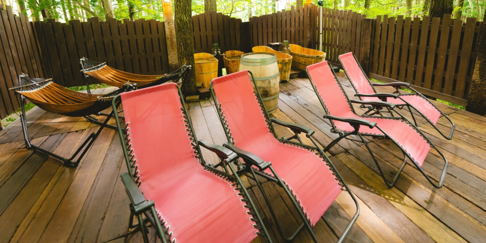 木々に囲まれたプライベートサウナで柔らかな熱とともに疲れが汗に溶けてゆく。