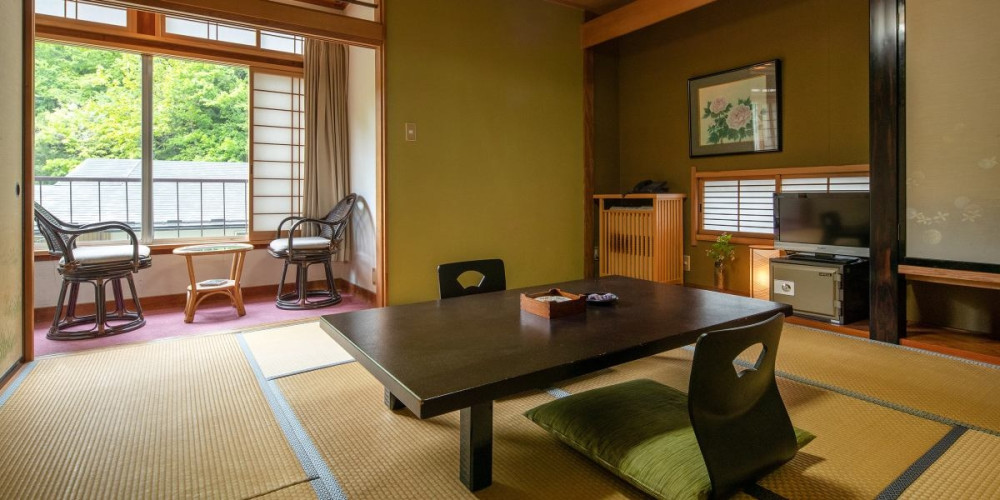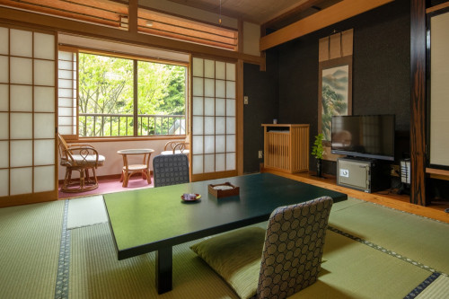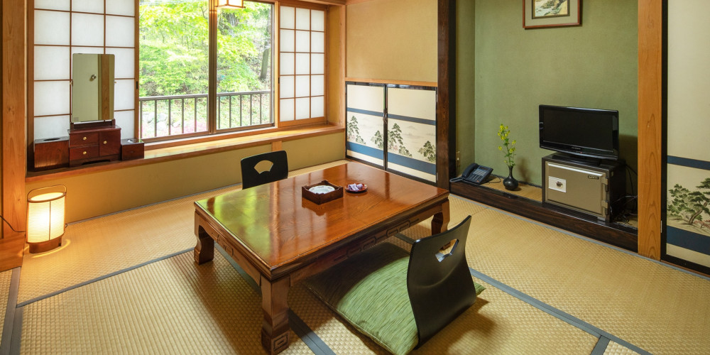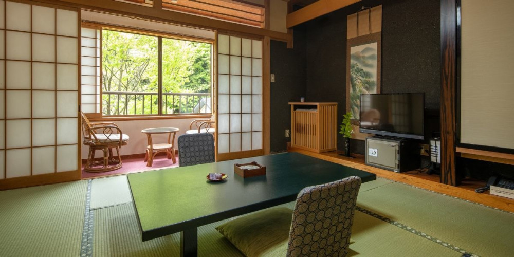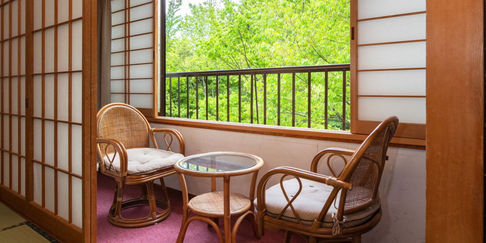 窓のすぐそばに木々が茂り、窓を開ければ心地の良い風が客室を吹き抜けます。
