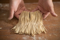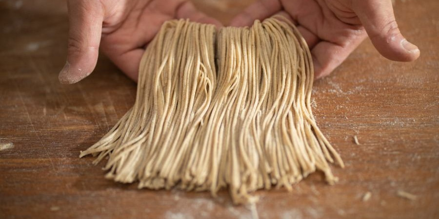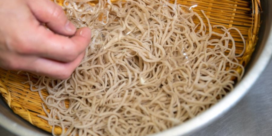 食べる寸前にゆで釜からあげ、コシと香りを損なわないよう、
