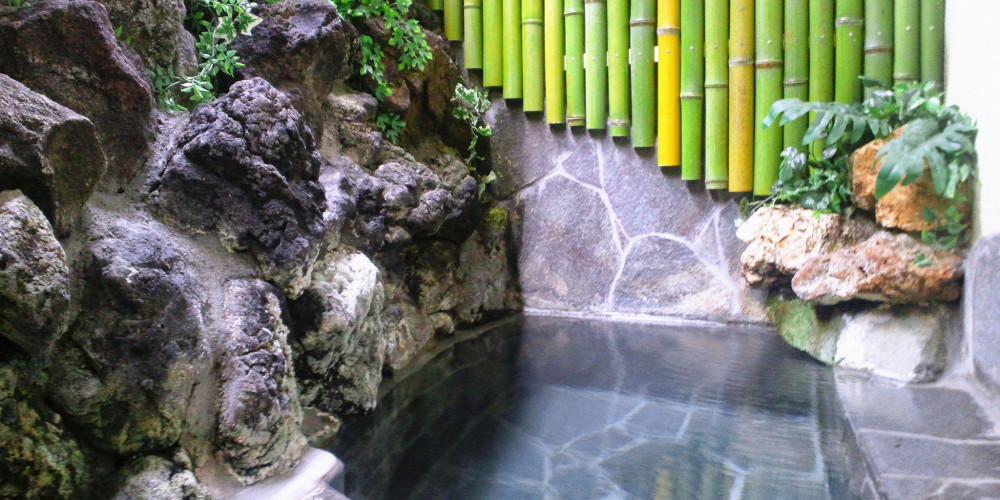 昔懐かしい岩風呂と、ほっと一息つける無料貸切露天