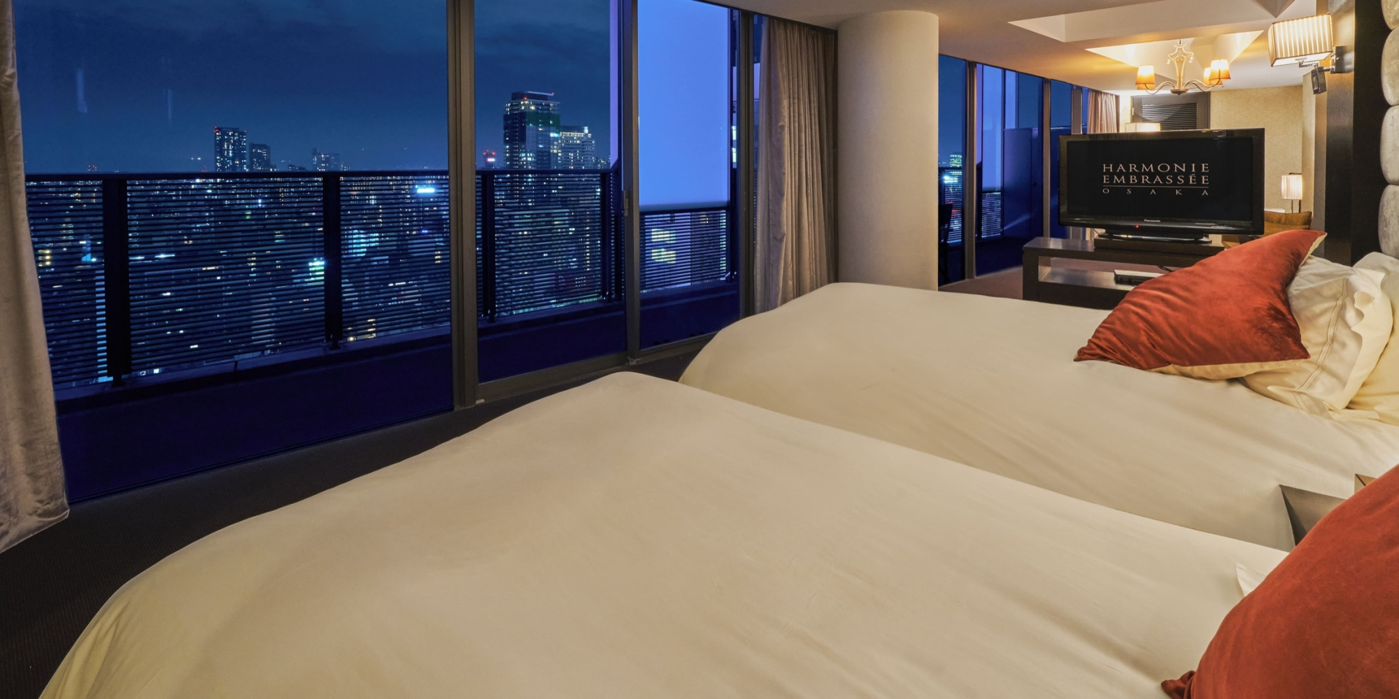 窓からはサンライズとシティビューが望め、大阪でのひと時をお楽しみいただけます。