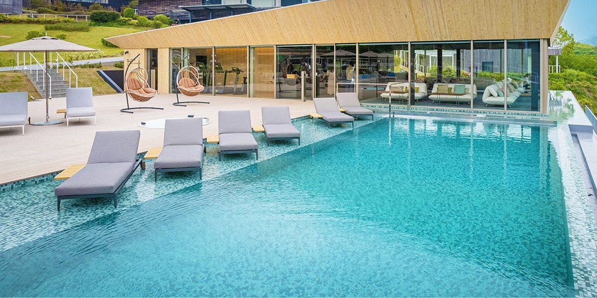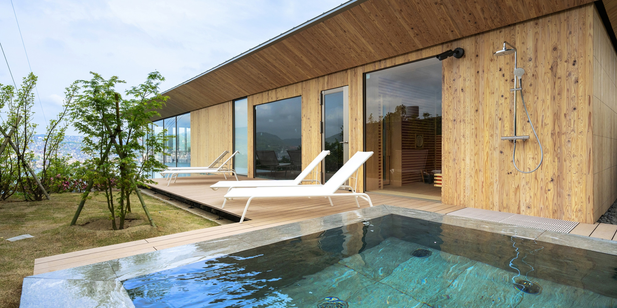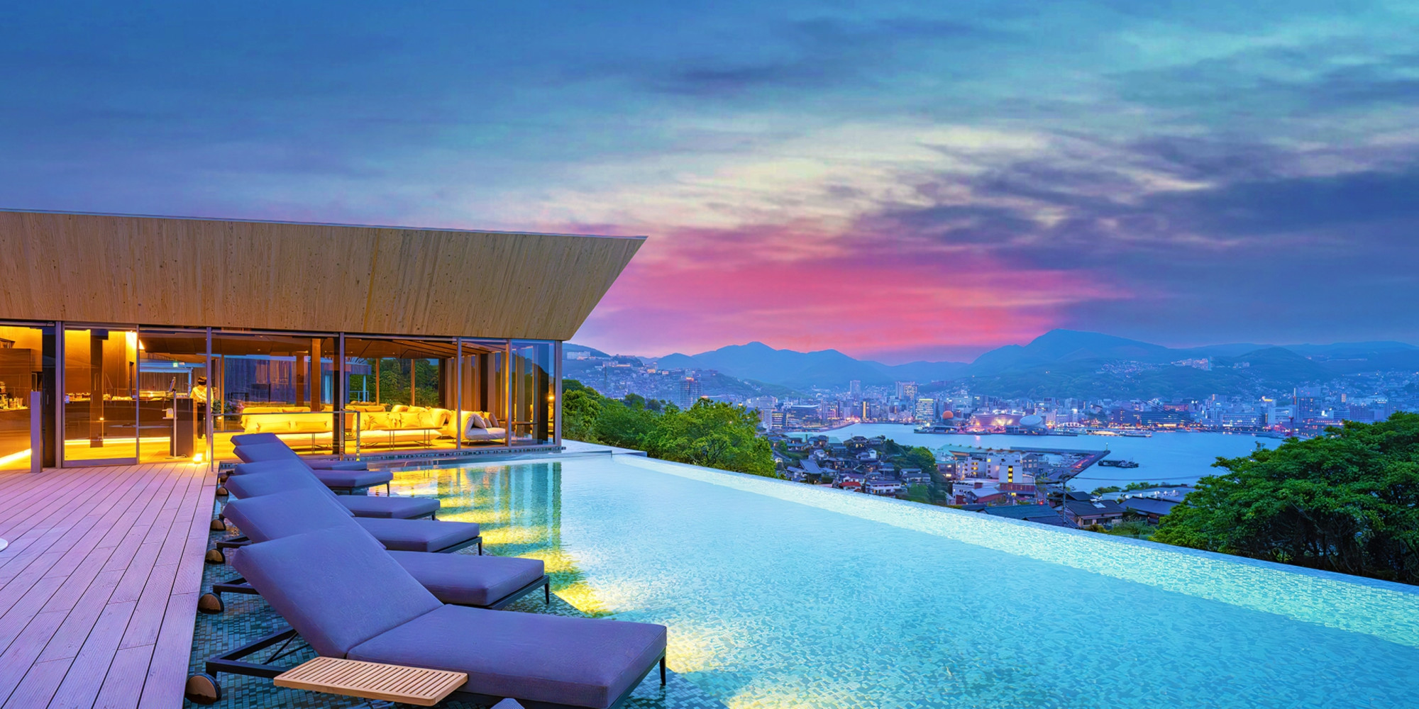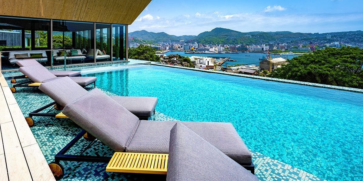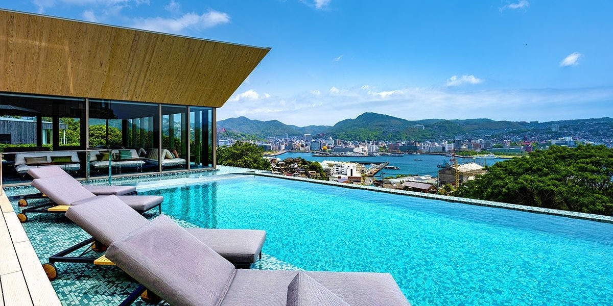 長崎港や市街地の街並みを望む全長20メートルのインフィニティプール。