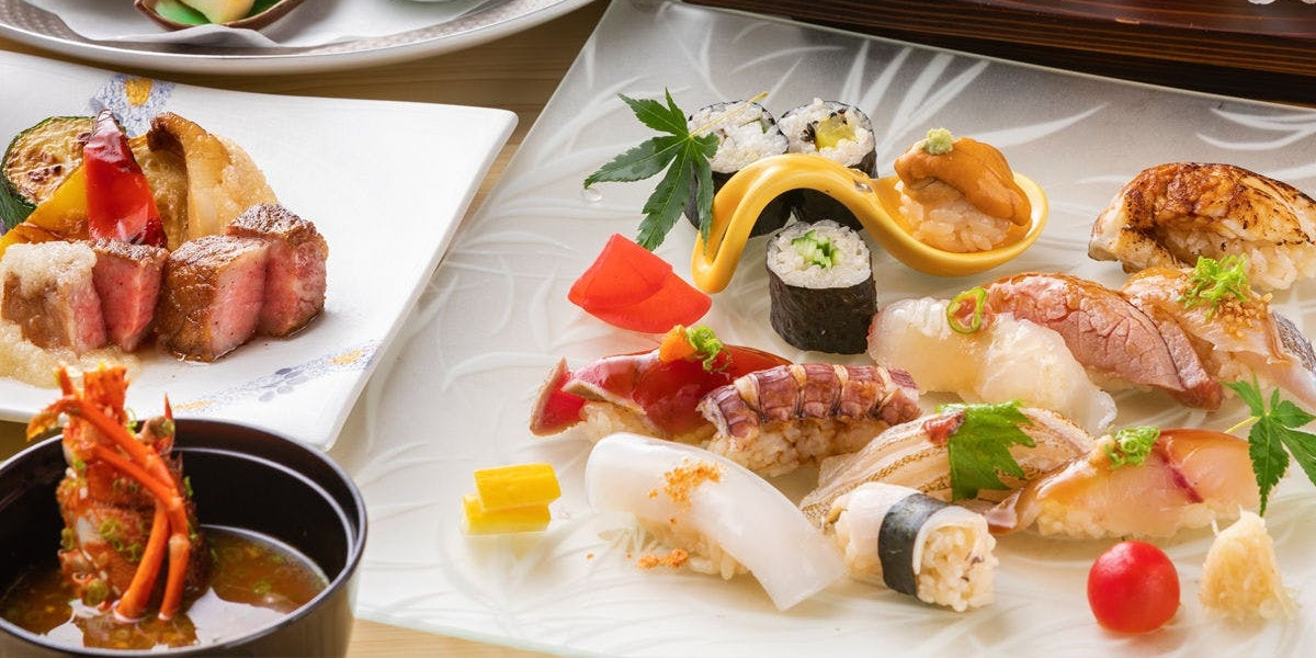 長崎を代表するブランド魚の「ごんあじ」や、タイ、 ヒラメなど、脂がのった旬の魚と寿司職人の技の競演は、思わずうなるほどの格別なおいしさ。