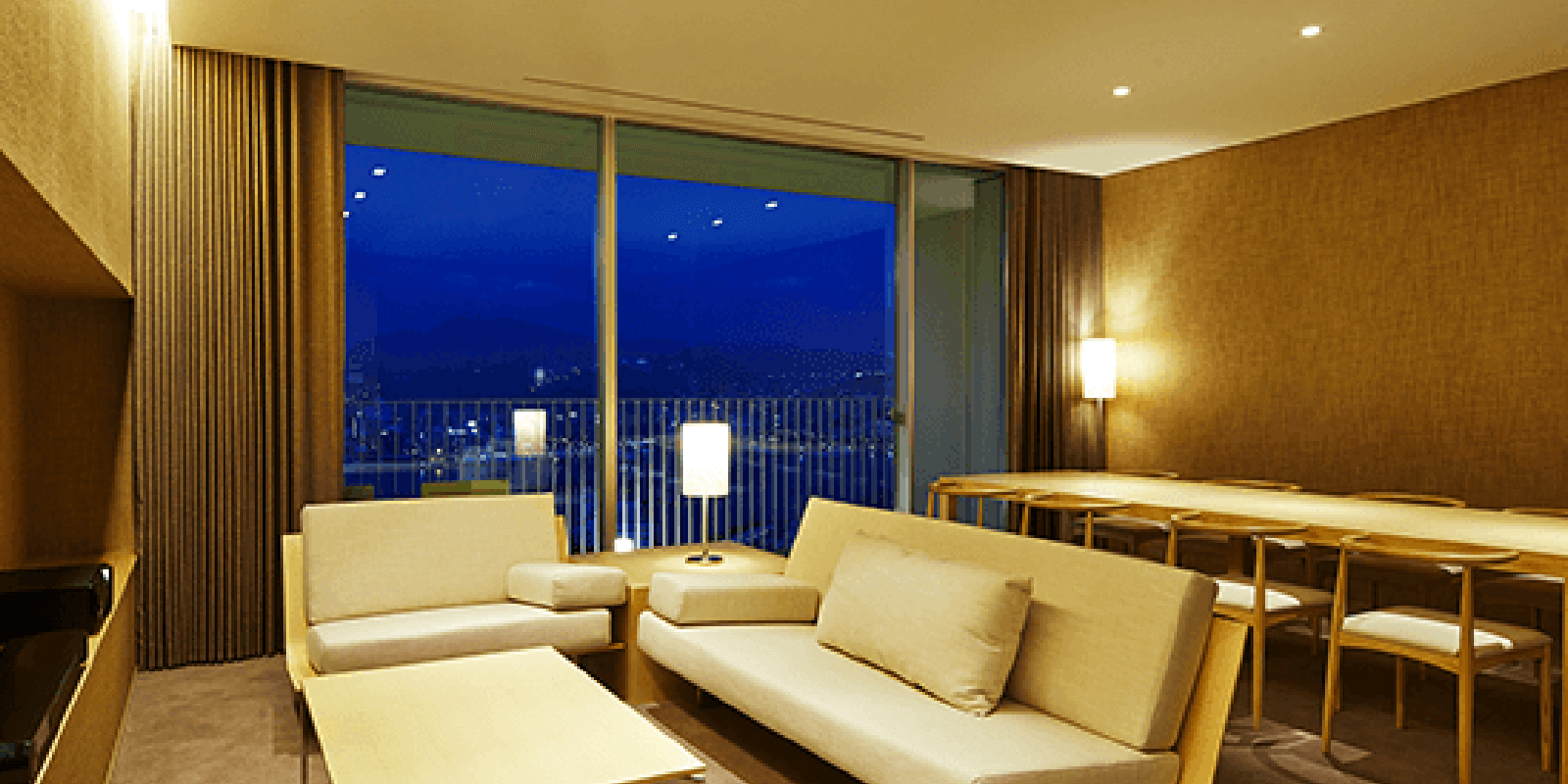 プレミアムハーバースイートとのコネクティングも可能で、合わせればグランドロイヤルスイートとして県下最大クラスの広さを誇る。