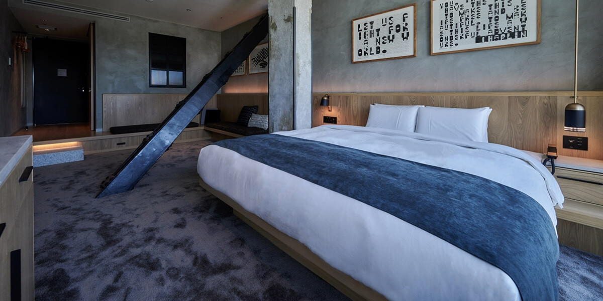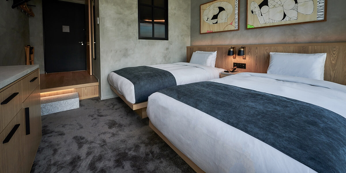 客室でお客さまをお迎えするのは、絵画や写真、映像、テキスタイルなど、 一室ごとに異なる、地元のアーティストによる作品たち。
