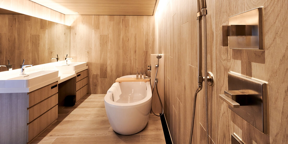 ゆったりとお寛ぎいただき、リラックスに集中できるバスルームです。