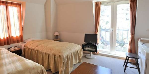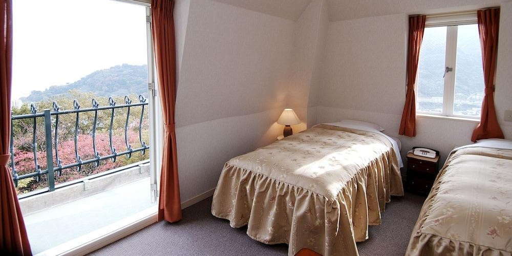 バルコニー・洗面台付ツインルーム。カップルやファミリーに人気の部屋で、禁煙室です