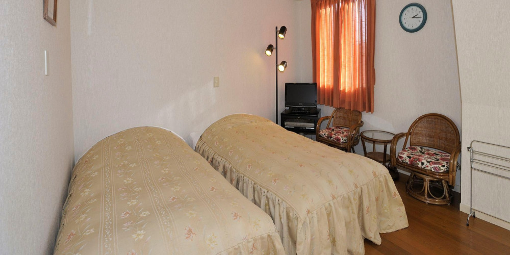 ちょっとこじんまりした洗面台付ツインルーム。カップルやファミリーに人気の部屋で、禁煙室です。