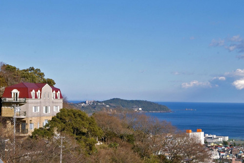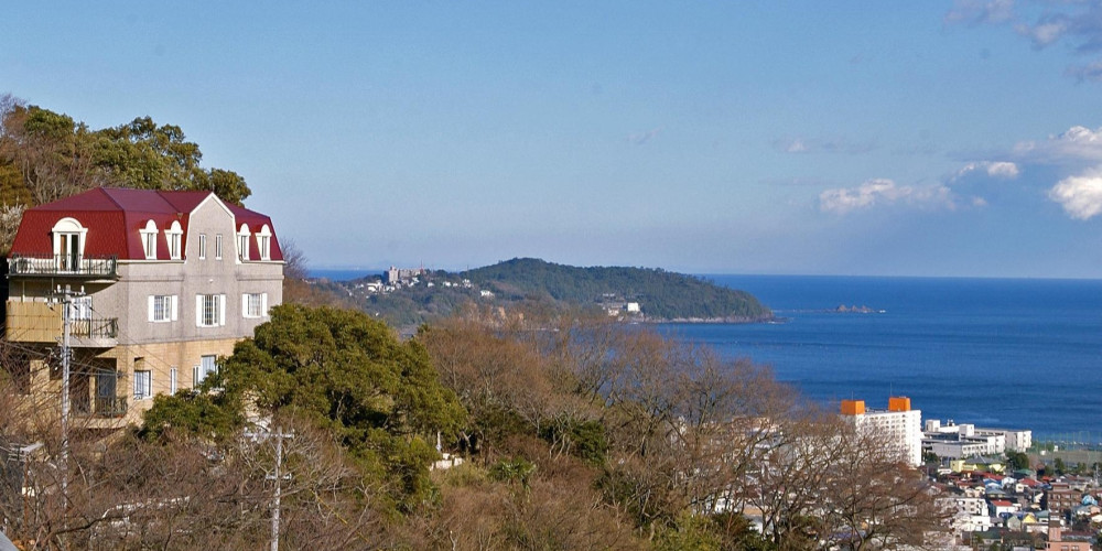 JR湯河原駅近くの高台にそびえ立つ、マンサード屋根の洋館からは、海・山・街が一望でき、まさに眺望山荘。