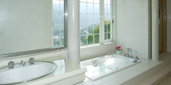 眺望山荘のお風呂は、和風温泉棟・洋風温泉棟・欧風バスルームの三種類がございます。
