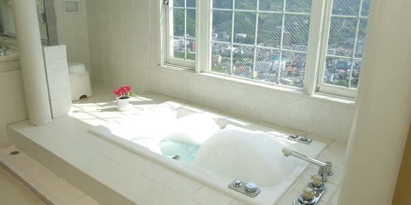 サンデッキからの眺めは最高!アメリカンジャグジーをお楽しみ下さい。 (収納式ガラス戸で開閉可能です。)