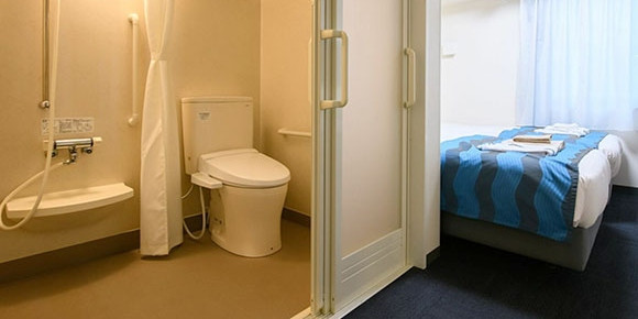 バリアフリー対応トイレ ※宿泊施設によって、バリアフリー設備内容や、対応できるサービス範囲が異なります。 ご不便なく安心してご利用いただくために、予め宿泊施設へ直接ご確認ください。 |