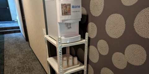 脱衣所の外には当館自慢の「羽山の湧水」をお飲みいただける給水機を設置しております。またお近くにアルコール・ソフトドリンクの自動販売機もございます。