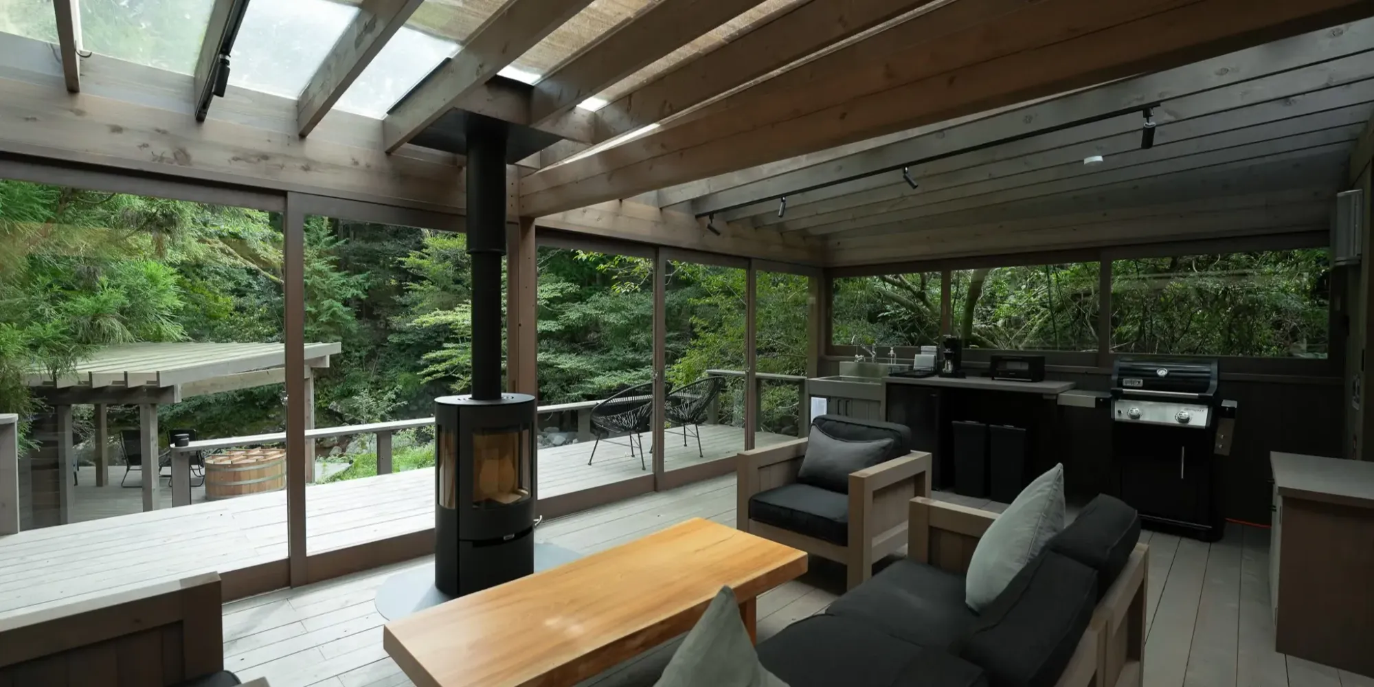 見渡しのいいウッドデッキでワーケーションや、コーヒー片手に自然を眺めてゆっくり過ごすのも。フィンランド式の薪サウナも完備、ご自分のタイミングでマイペースに楽しめるサウナ、自然の中でマイナスイオンをたくさん浴びる外気浴を存分にお楽しみください。