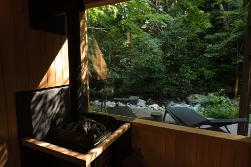 各部屋タイプにサウナを完備しております。大自然を目の前に最上級の整い体験をお楽しみください。