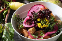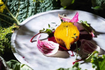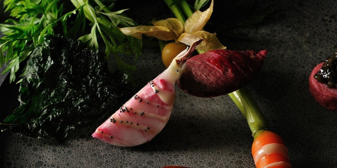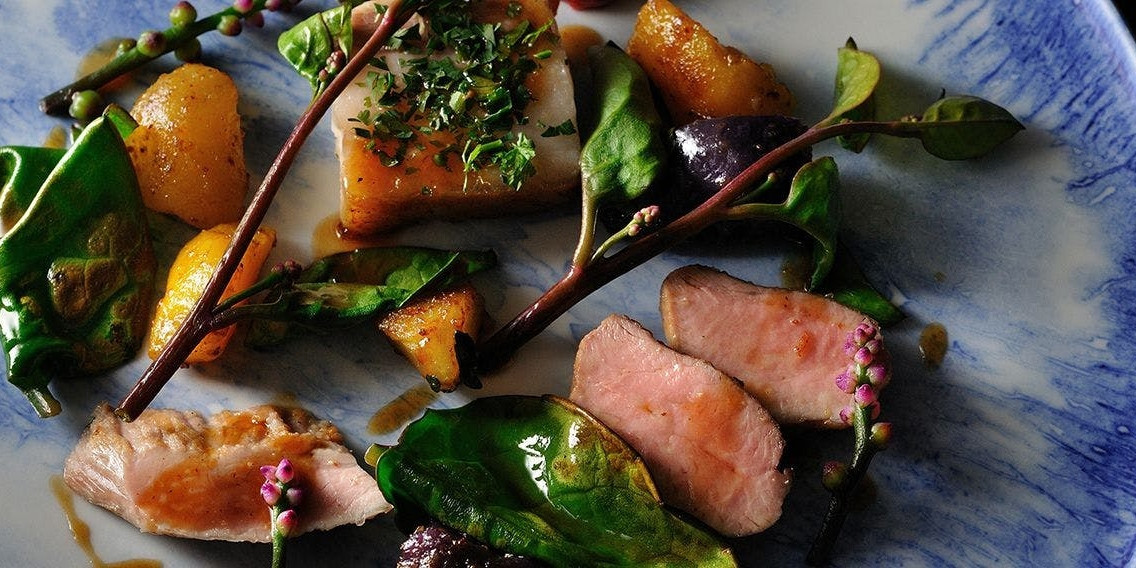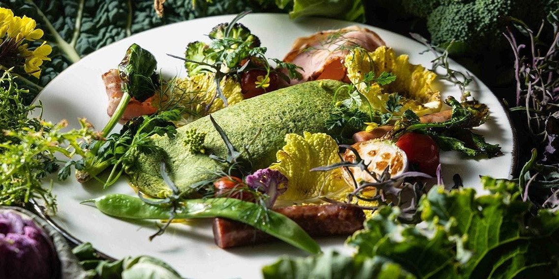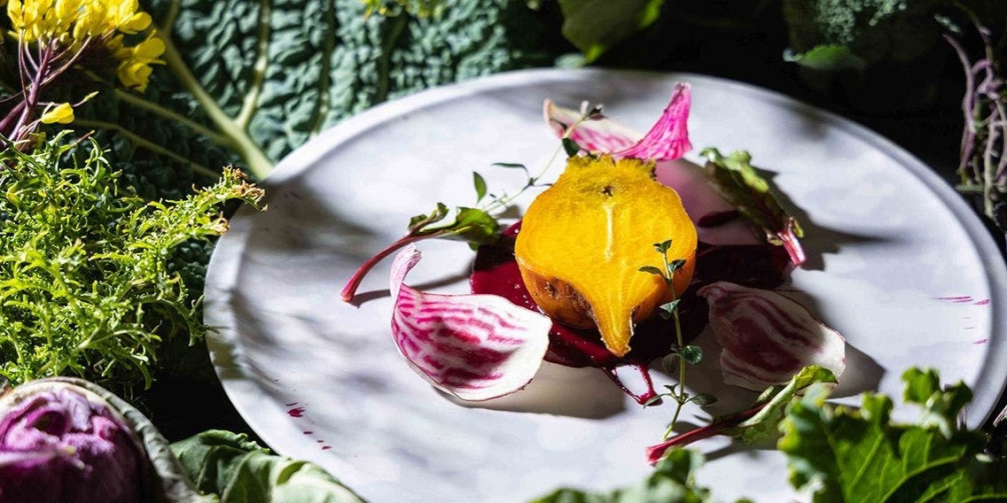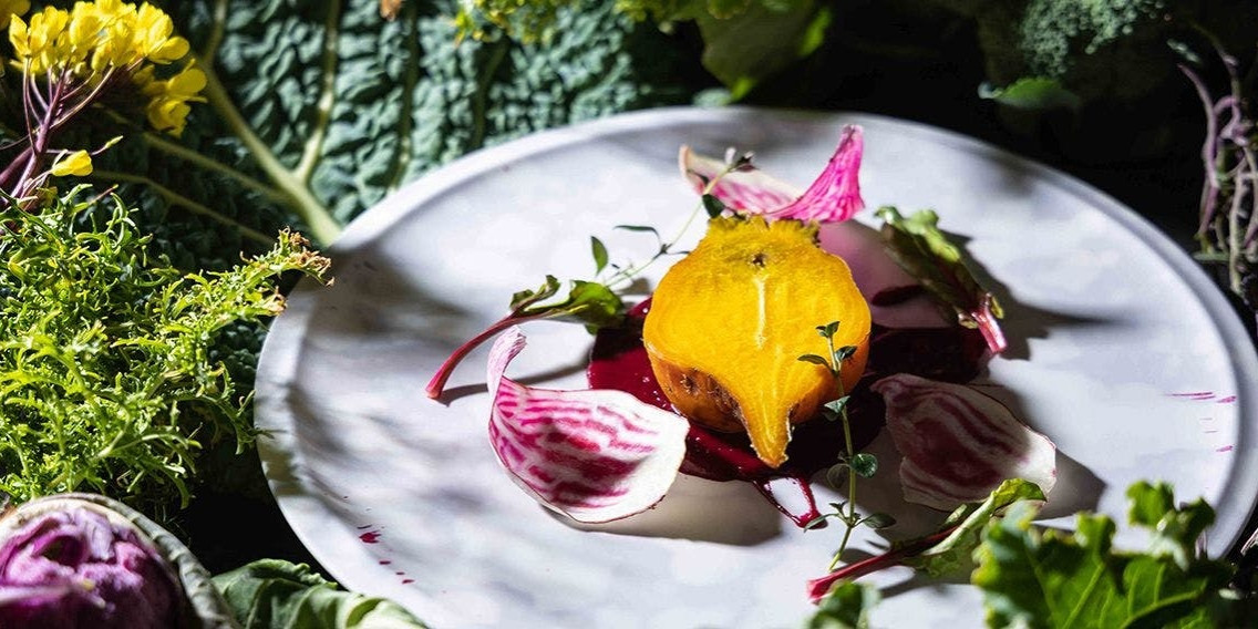 野菜の力強さに加え、選び抜かれた肉や旬の恵みを組み合わせ、驚きと発見に満ちたひと皿へ。