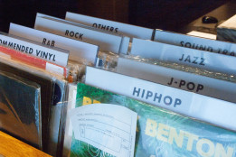 フロント横には無料でレンタルしていただけるレコードラックをご用意しており、