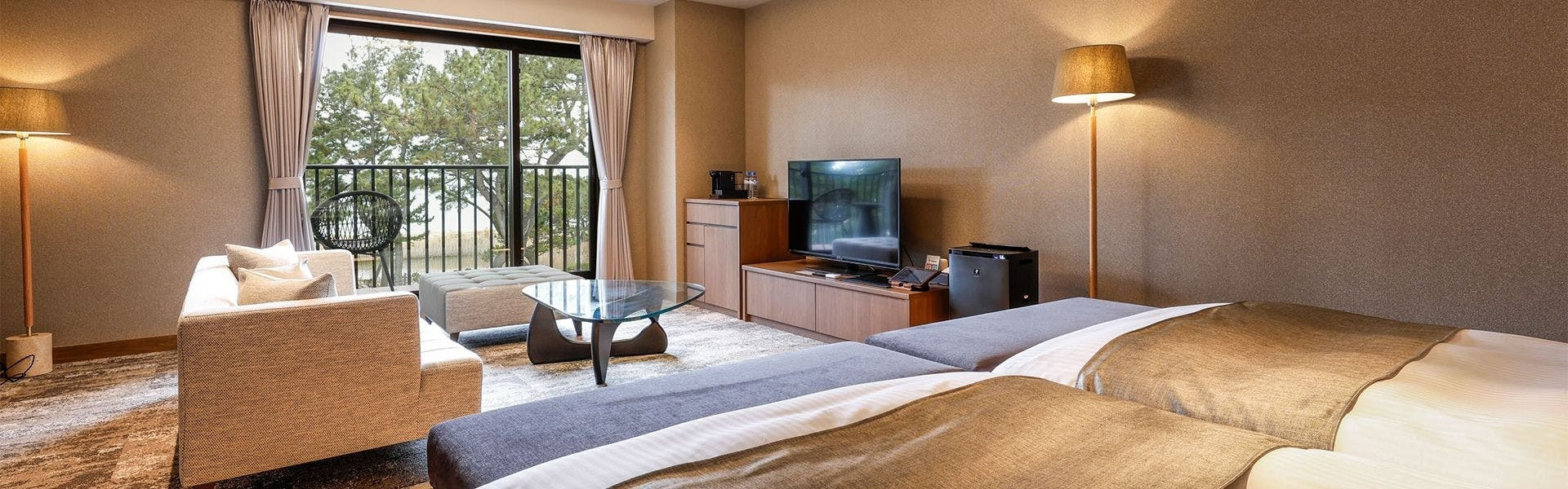 ご家族でもカップルでも、様々なシーンに合わせて用意したくつろぎの客室でお過ごしいただけます。