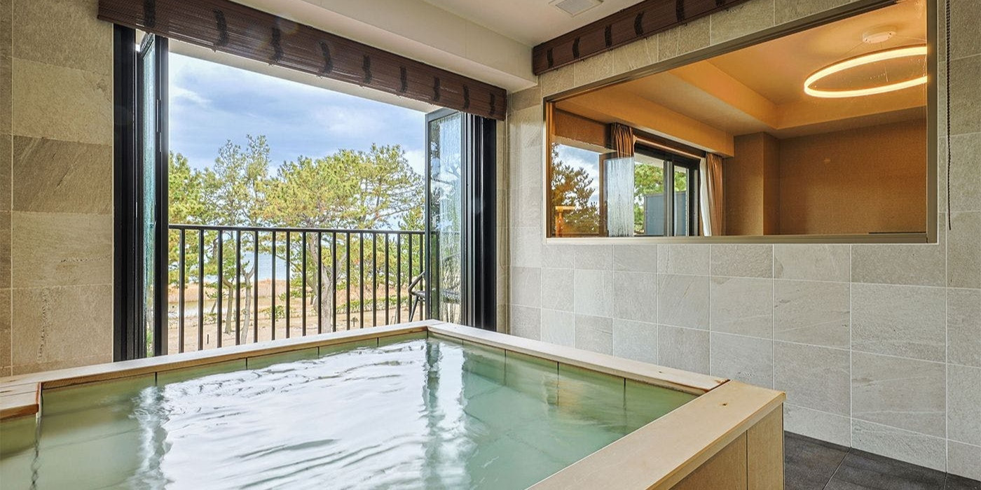 また、露天風呂からは慶野松原の雄大な景色をご覧いただけます。