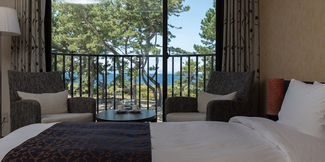 慶野松原に佇む宿で、美しい夕陽とうずしお温泉を堪能