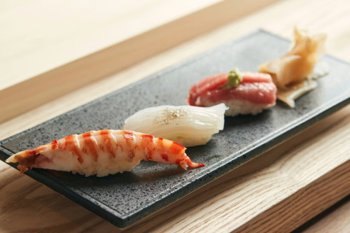 朝夕のお食事は、敷地内に併設されたすし処「神の前」で。