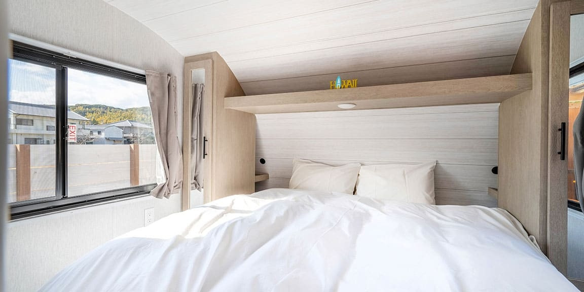 室内にはベッド、トイレ、シャワールーム、キッチン、充実したアメニティをご用意しております。