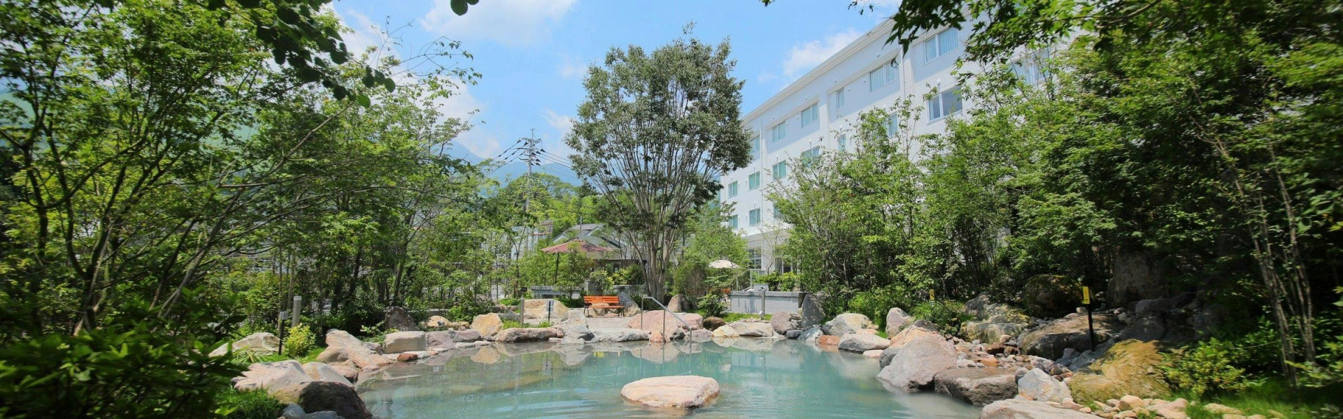 別府市明礬の自然に囲まれたリゾートホテル「杜の湯リゾート」。