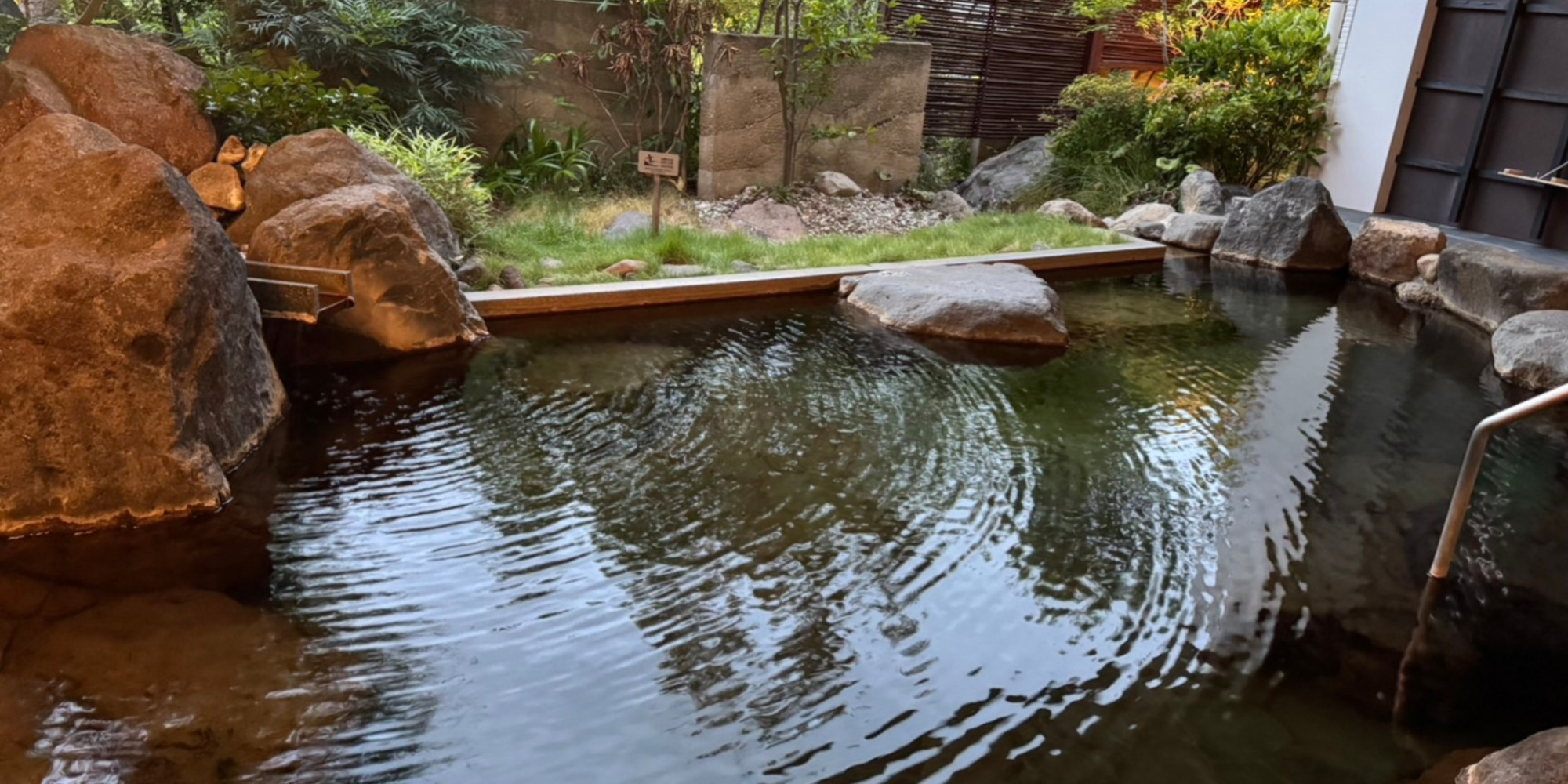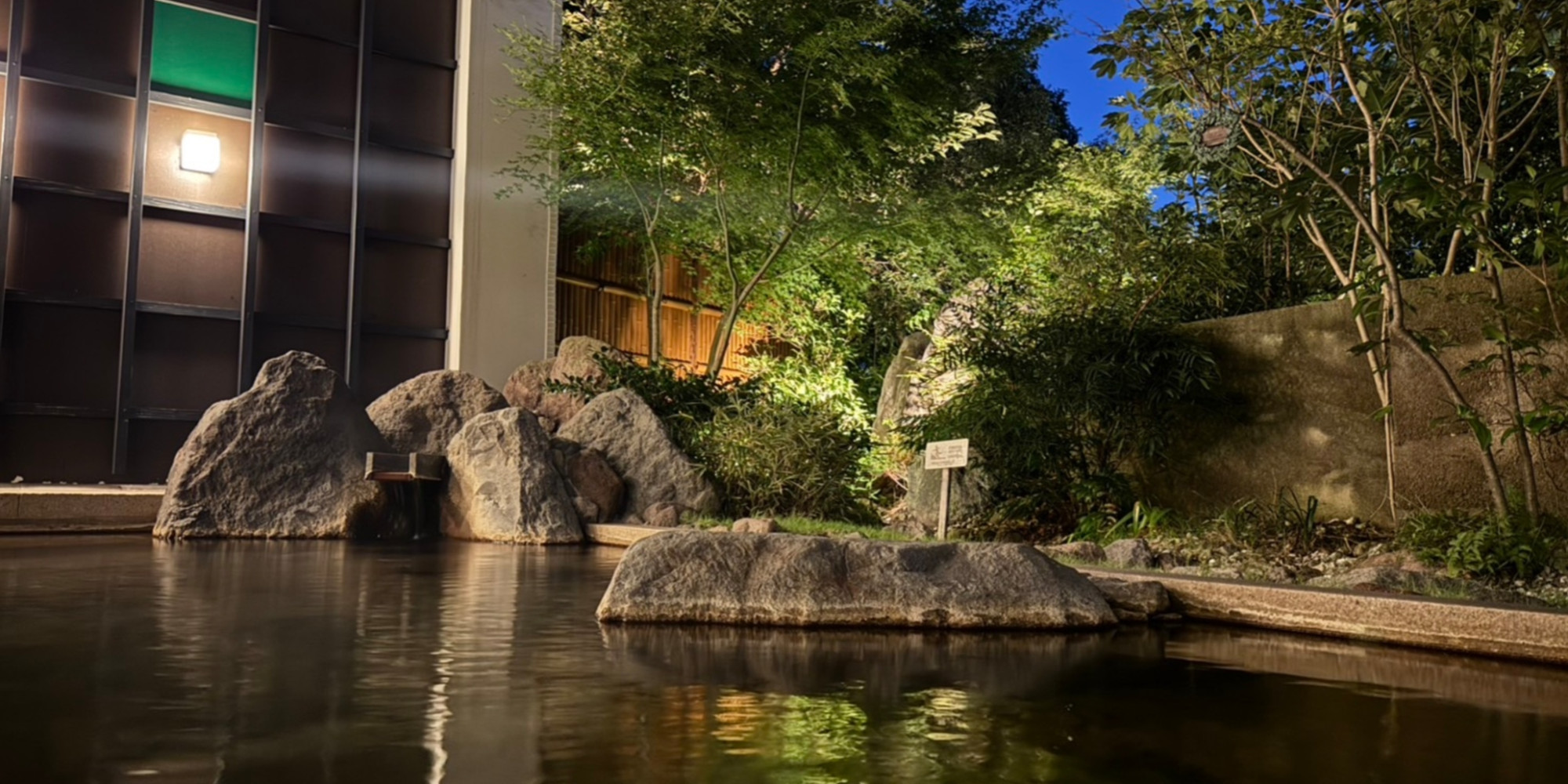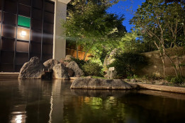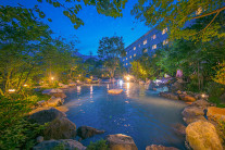 カップルやご家族で一緒に楽しめる水着着用の庭園風呂「空の湯」など温泉も充実しております。
