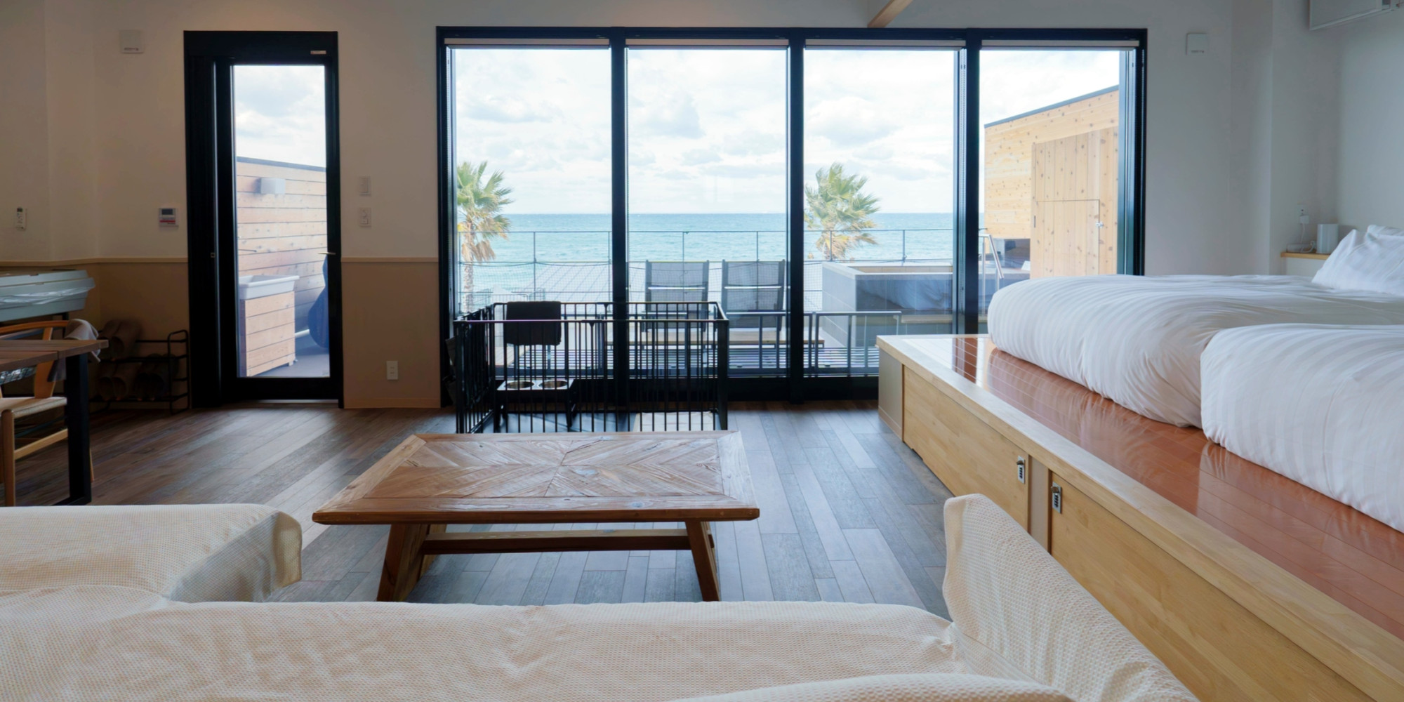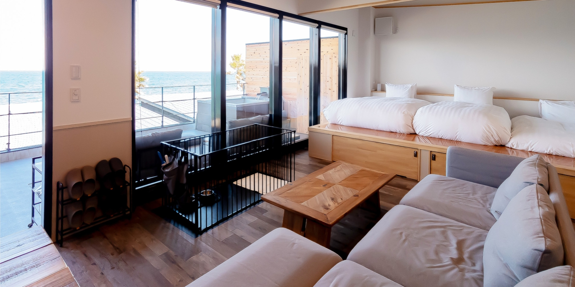 | その他 | ・チェックイン時間が18:00を過ぎる場合は、必ずTEL:050-3533-0606までご連絡ください。 ・秋季~冬季は、波が高くなり、1階テラスに波しぶきが上がる場合があります。これも当施設宿泊の醍醐味としてお楽しみ下さい。 ・テラスでは静かにお過ごし下さい。騒音の苦情があった場合、利用規約違反として即時ご退館頂く場合がございます。 ・BBQは、オプション貸出のBBQガスグリルを必ずご使用下さい(炭利用、炭によるBBQコンロの持込厳禁)。禁止事項を破ってのご使用による火災は全てお客様の責任となります。 ・テラスを含め全施設禁煙です(屋外喫煙所有)。室内で喫煙された場合等、別途清掃費用もしくは修理費等をご請求致します。・施設内及び海岸での火気(花火、焚き火、キャンドル等)ご使用は厳禁です。 ・【愛犬同泊注意事項】①お部屋により受入可能頭数等が異なります。ご確認の上ご予約下さい。②寝室・キッチン・浴室・トイレへの出入は禁止です。③テラスでは落下防止のためリードをつけて下さい。 ・④愛犬との外出時には必ず愛犬にリードをつけて下さい。⑤愛犬の施設内でのトラブル・事故・脱走等が発生いたしましても、当施設は一切の責任を負いかねますのであらかじめご了承下さい。 ・【愛犬受入可能条件】①トイレや無駄吠えに関し十分にしつけ②訓練がされていること③滞在中ヒート期間(発情期)でなく、かつ妊娠状態でないこと④日常的に室内で飼育されており、極端な吠え癖、噛み癖がないこと ・⑤ノミ、ダニ、その他寄生虫が駆除されていること⑥伝染病や皮膚病などの病気にかかっていないこと ・⑦混合ワクチン「3年以内の予防注射あるいは国家承認を受けたコアワクチン抗体検査」の証明書、狂犬病予防接種「1年以内の狂犬病の予防接種」証明書または鑑札※両証明書をご持参ください。 ※プランごとにチェックイン、チェックアウト時間が異なる場合がございますので必ずご確認ください |