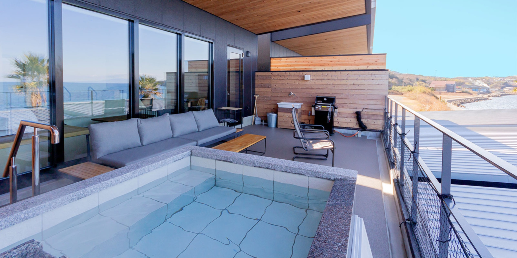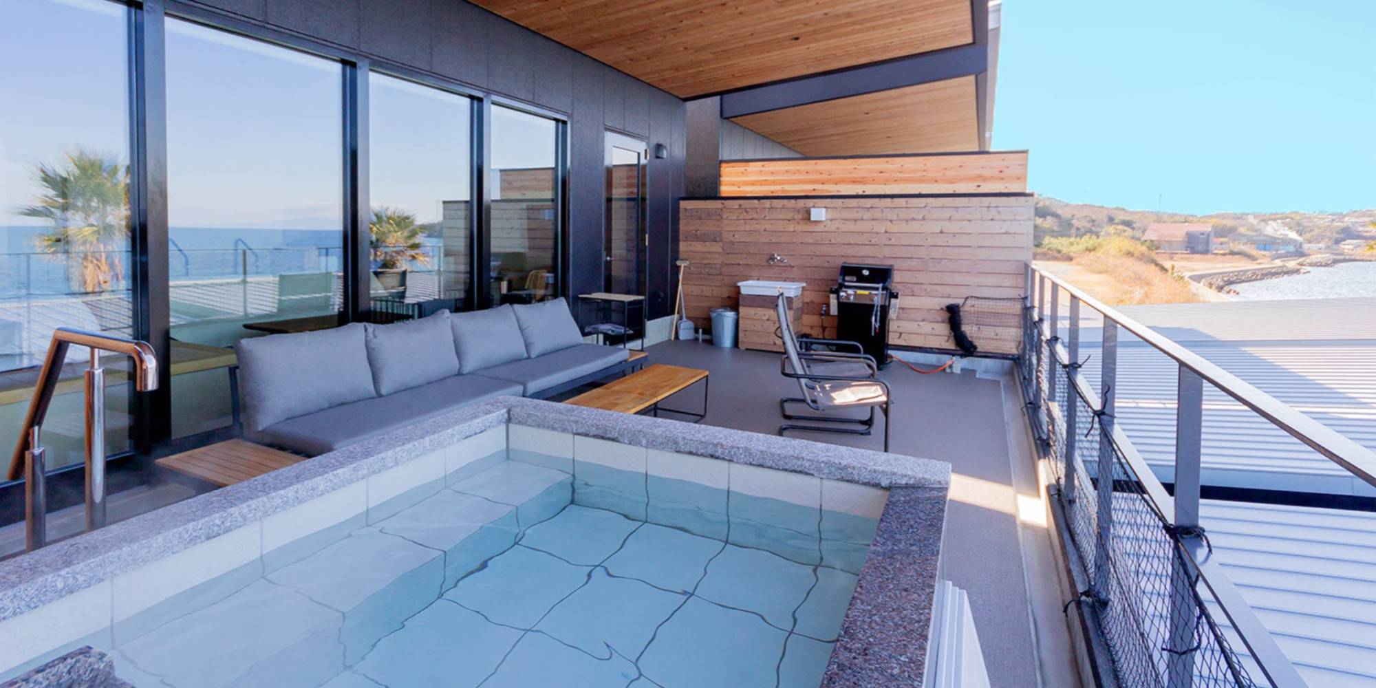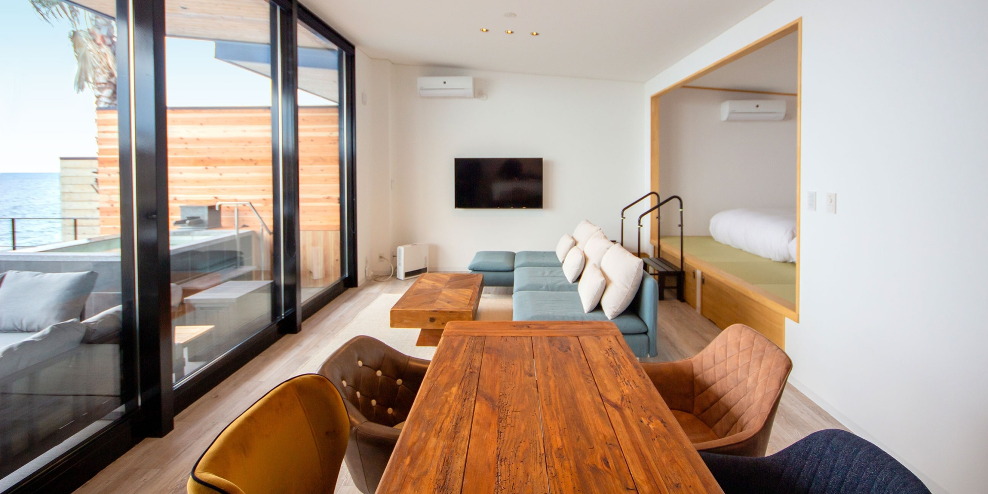 ホテルの居住空間の快適性をそのままに、別荘の個別性とテラスのアウトドア感を満喫できる、新しい貸別荘スタイル。