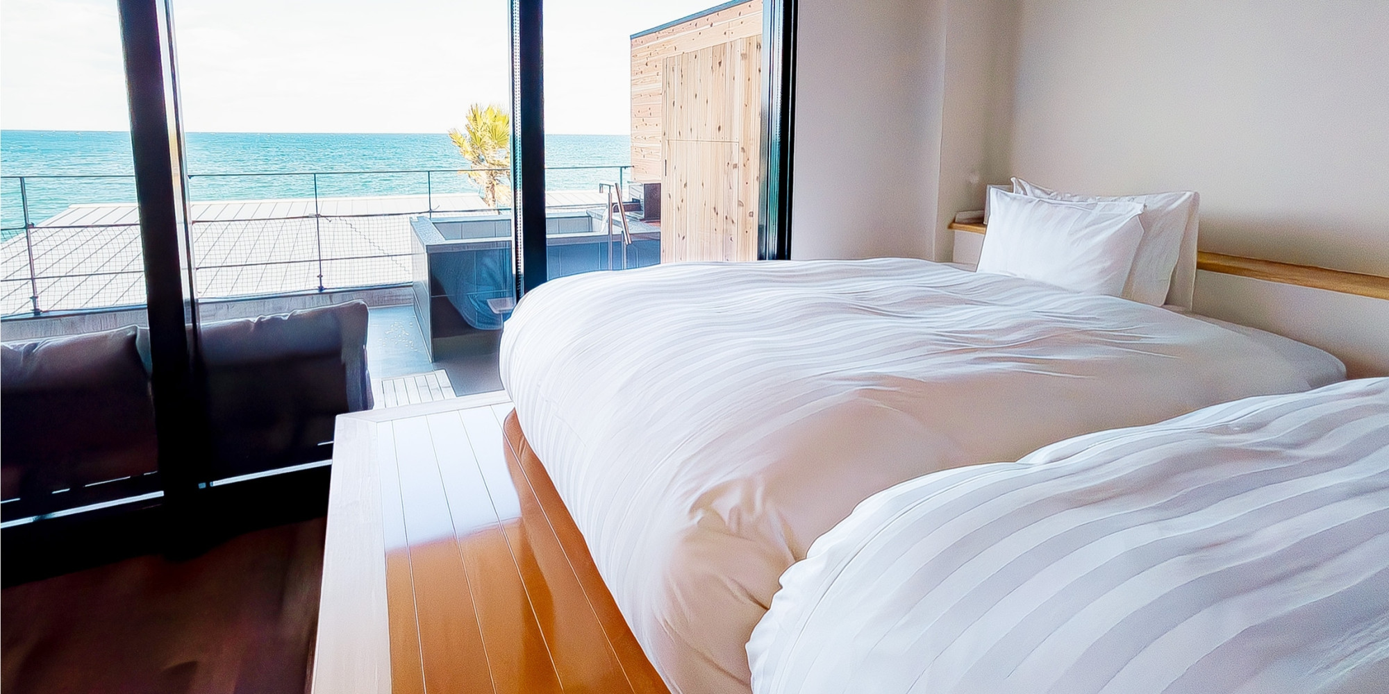 全棟露天風呂付きのオーシャンフロントヴィラ。