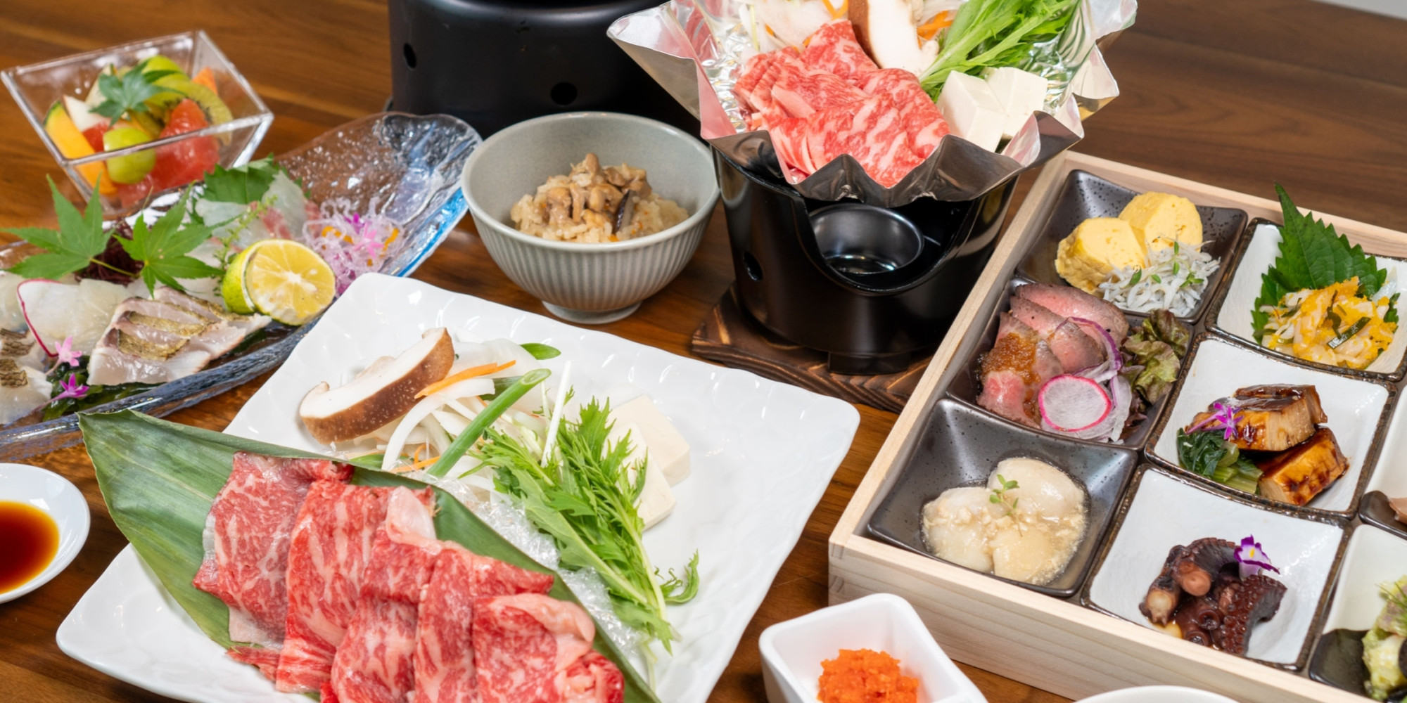 とろけるような淡路牛のしゃぶしゃぶに、新鮮な魚介の刺身、