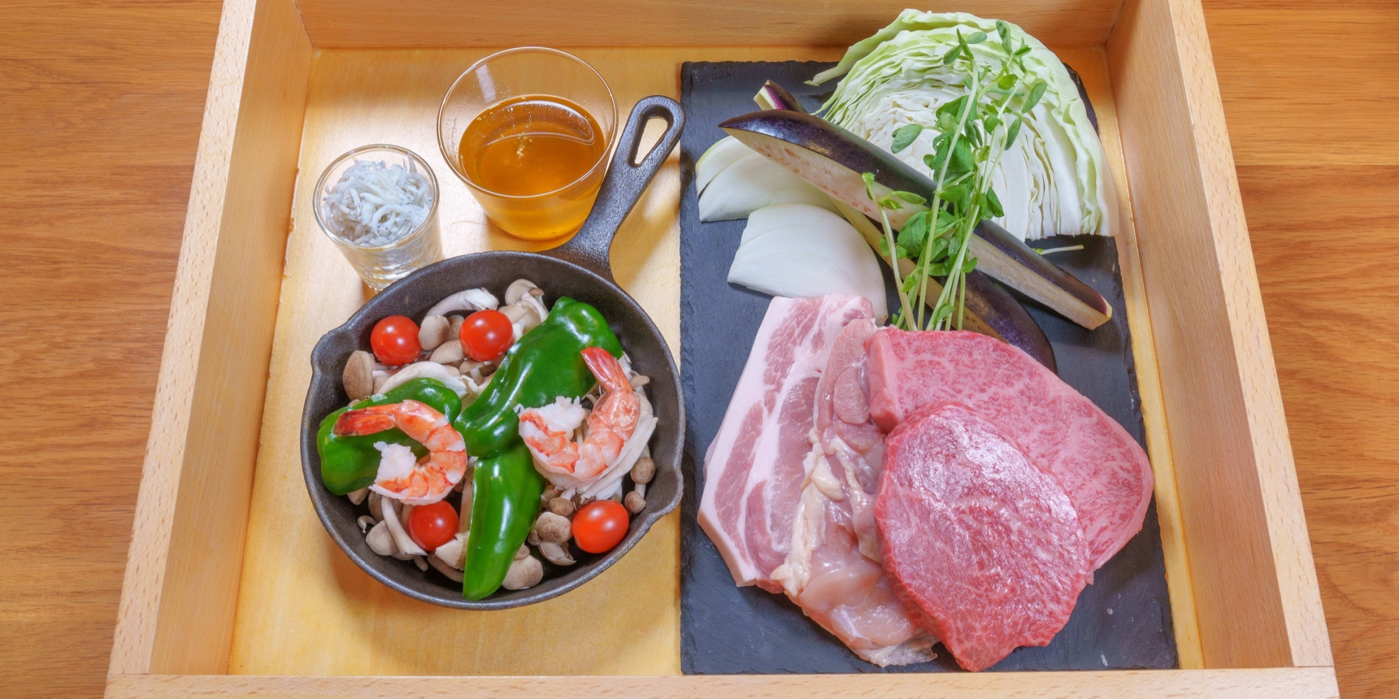 当館オリジナルBBQセットで、用意も楽々BBQ。