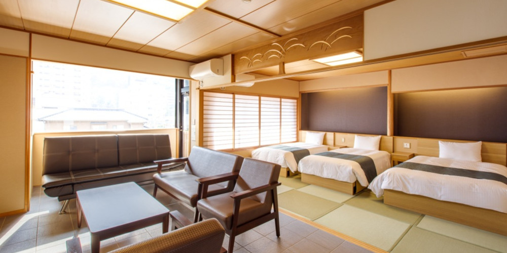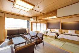 解放感いっぱいの和モダンなお部屋に3台のベッドを配置しました。