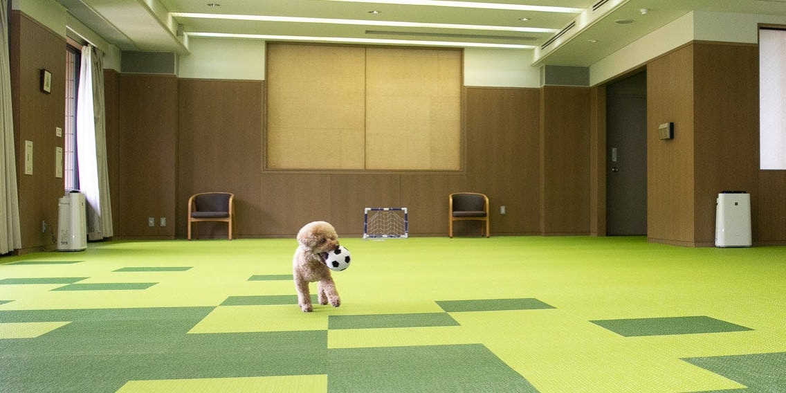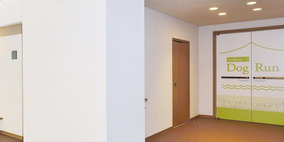 館内の移動は全てリードのままでOK、レストラン・ロビーもご一緒にOK。室内のドッグランもありますので雨の日や暑い夏の時期でも のんびりとお過ごしいただけます。