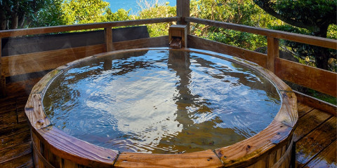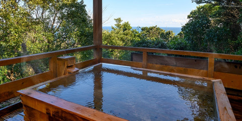 紺碧の海、空の青、木々の緑。自然の光のコントラストと、湯と共に感じる情緒をお楽しみください。