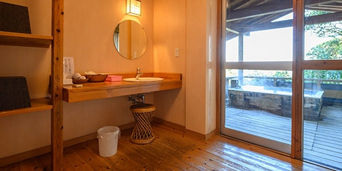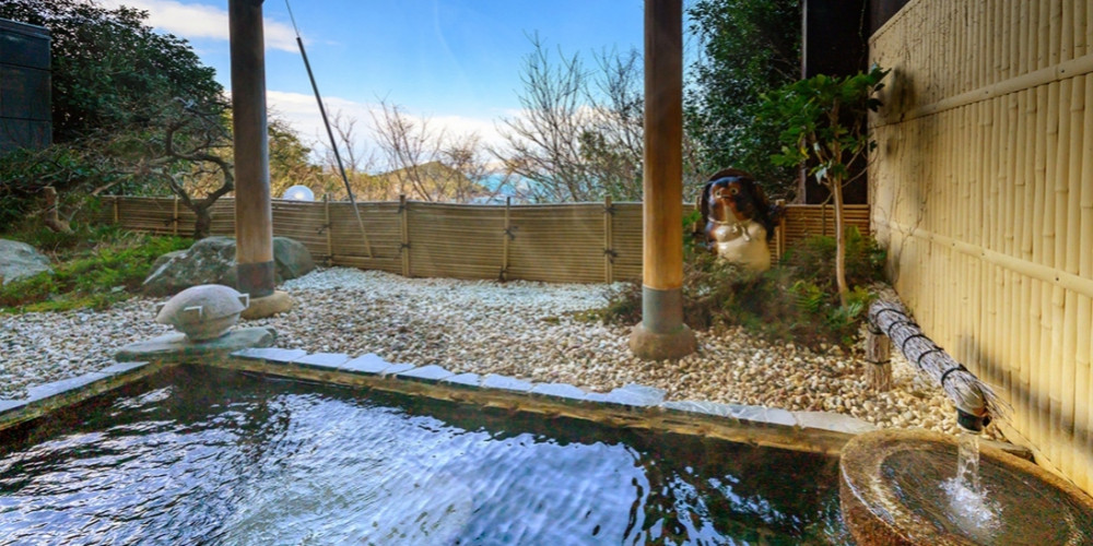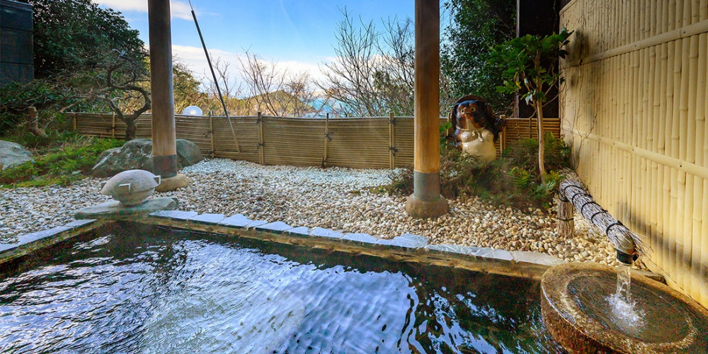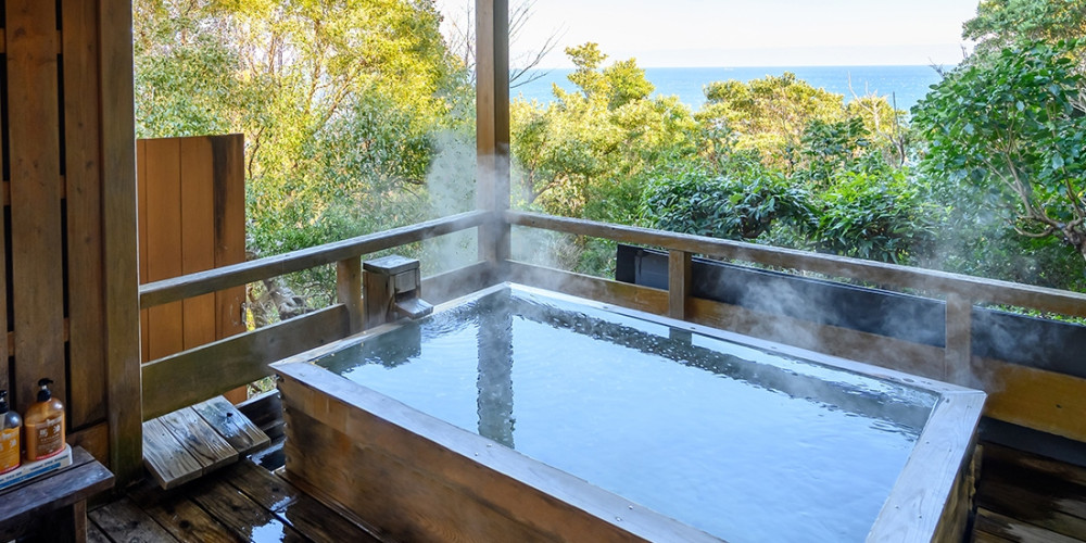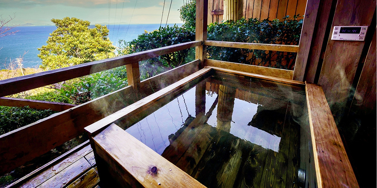 紺碧の海、空の青、木々の緑。自然の光のコントラストと、湯と共に感じる情緒をお楽しみください。