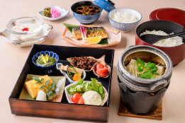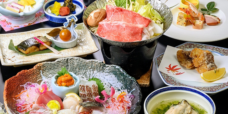 石鏡漁港に近く、伊勢海老やあわび等の新鮮な魚介類はもちろん、山の幸も豊富。