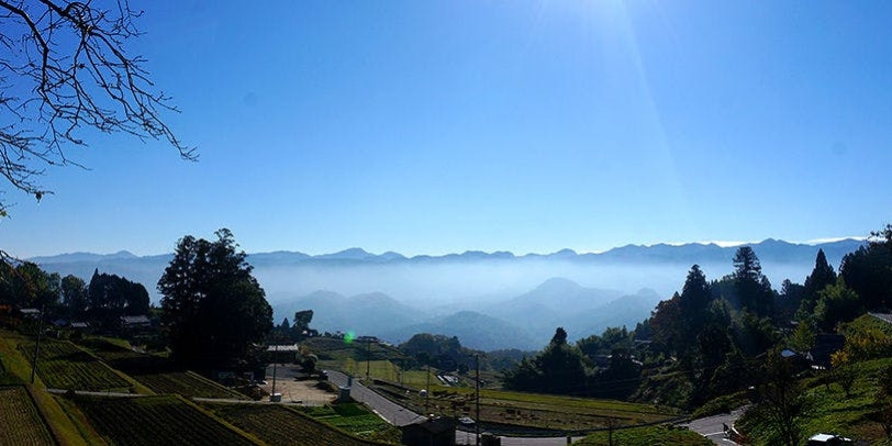 早朝にあらわれる雲海、朝日に照らされる棚田のきらめきは、ささゆり庵ならではの絶景。