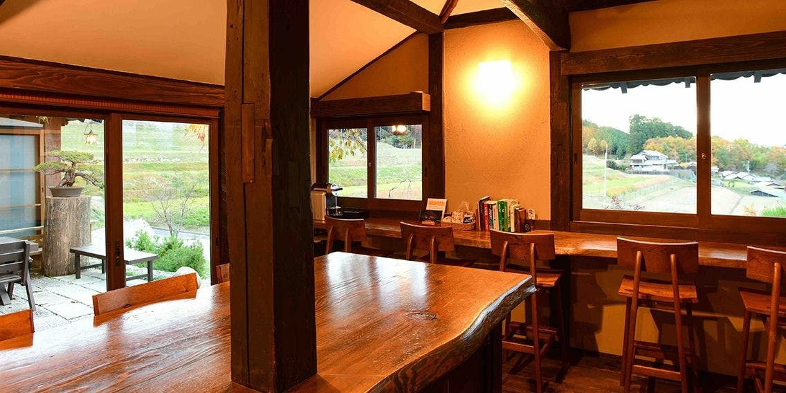 館内に台所や棚田の絶景を望めるカウンターがあります。