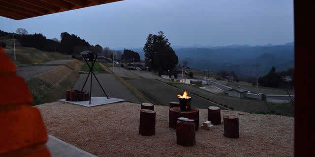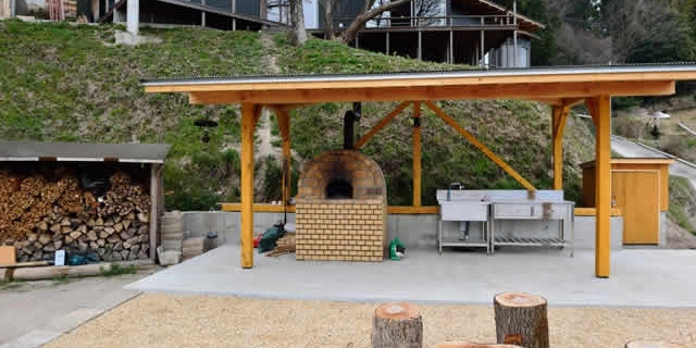 ささゆり庵母屋横に絶景を望むBBQ場とピザ釜をご用意しました。