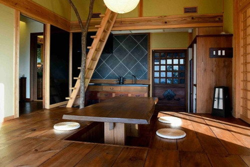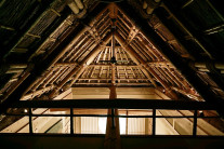 また、ロフトからは見上げれば美しく組み上げられた茅葺屋根が手の届くところに。