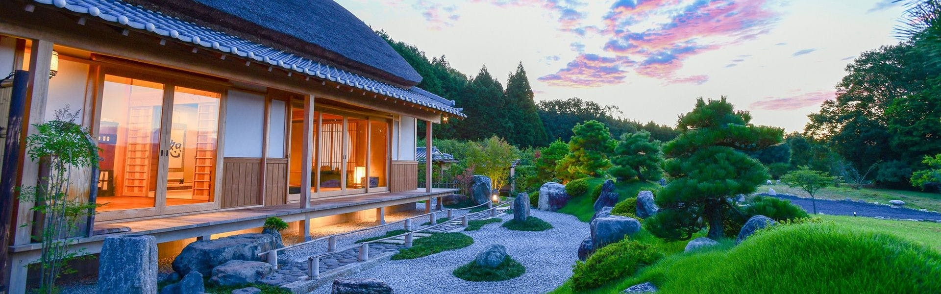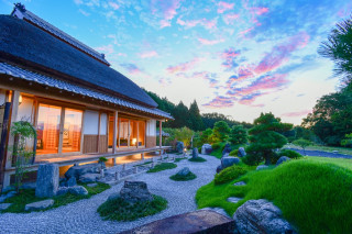 絵画のような棚田の絶景と心癒される庭園を持つ新築茅葺家屋