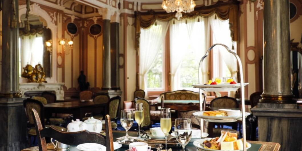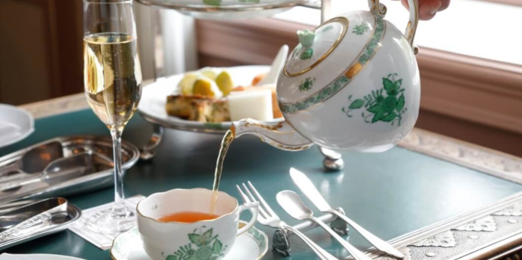 歴史ある調度品に囲まれた、⽢く贅沢なティータイム