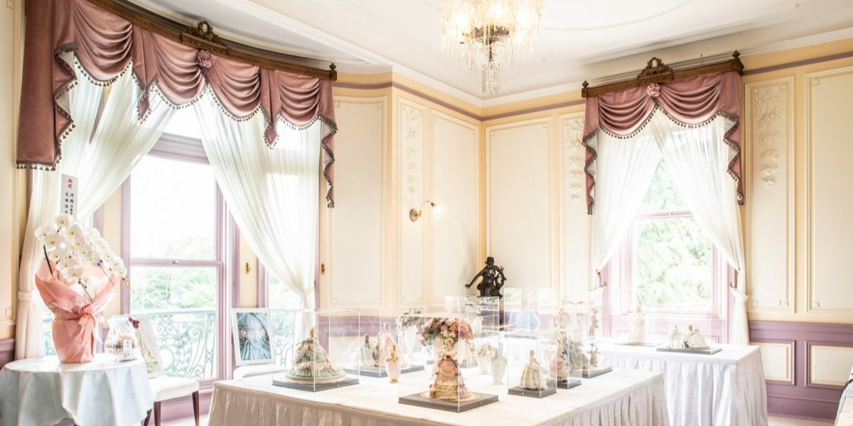明治時代にフランスから輸入されたシャンデリアや、イギリスから輸入された家具、