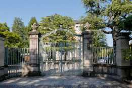 ※八坂神社南の神幸道を東に進み、石鳥居を過ぎて次を左折した場所に長楽館東側正面門がございます