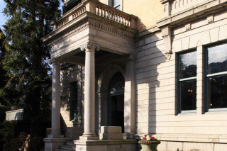 ルネサンス風のイオニア式門柱が立つ玄関ポーチには、